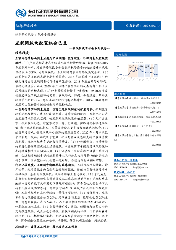 【东北证券】【20220517】互联网投资机会系列报告一:互联网板块配置机会已至-22页