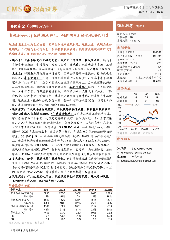 创新研发 医药生物 国产替代 胰岛素集采 通化东宝