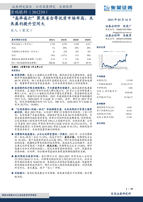 医疗服务 市场布局 消费升级 盈利能力 眼科医疗