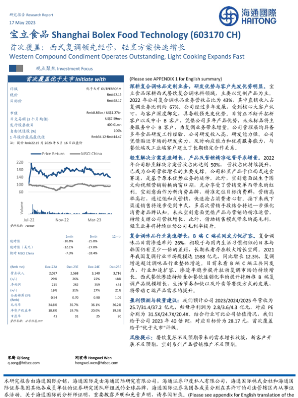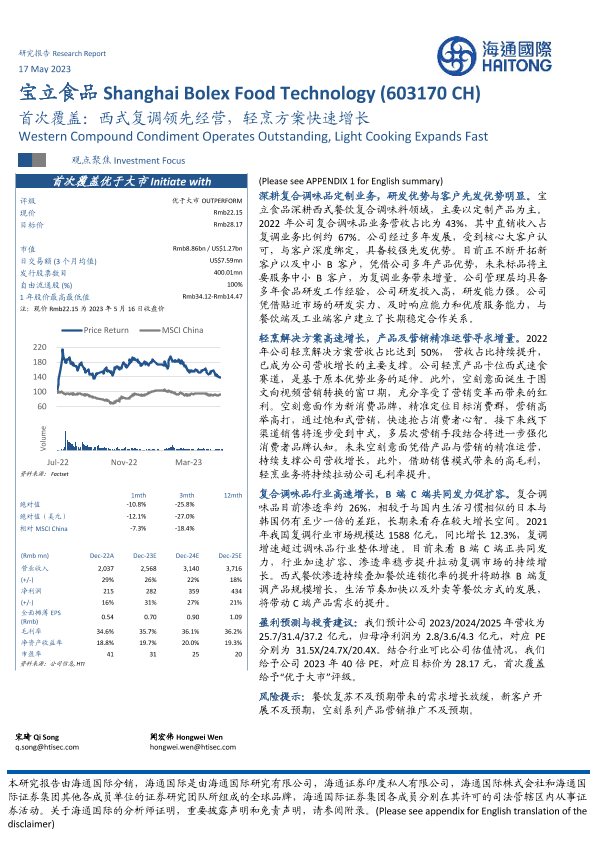 【海通国际】【20230517】20230517-海通国际-宝立食品-603170.SH-首次覆盖:西式复调领先经营,轻烹方案快速增长-24页