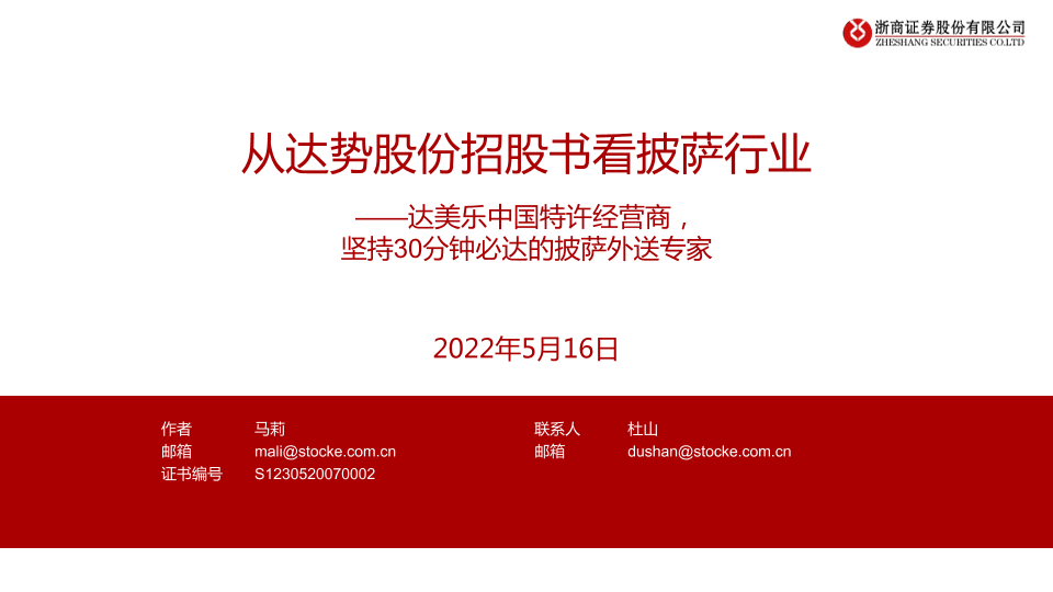 【浙商证券】【20220516】从达势股份招股书看披萨行业:达美乐中国特许经营商,坚持30分钟必达的披萨外送专家-32页