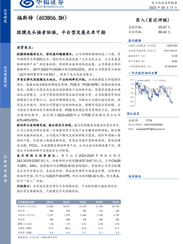 【华福证券】【20230517】福斯特(603806.SH)胶膜龙头强者恒强,平台型发展未来可期-38页