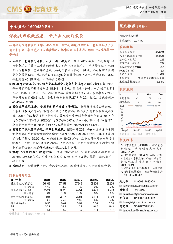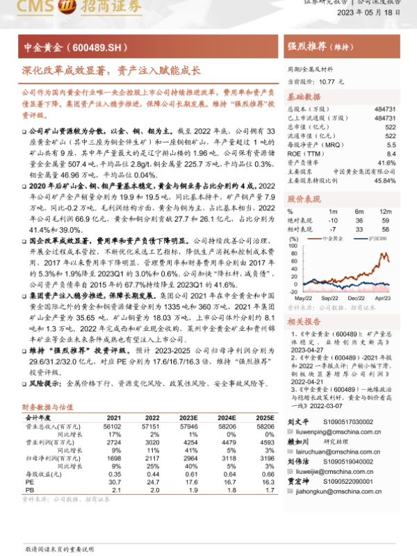 中金黄金 国企改革 资产注入 金属及材料 黄金行业
