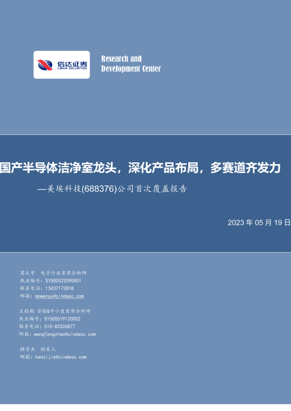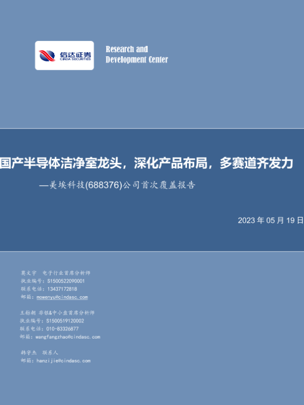 【信达证券】【20230519】20230519-信达证券-美埃科技-688376.SH-公司首次覆盖报告:国产半导体洁净室龙头,深化产品布局,多赛道齐发力-24页