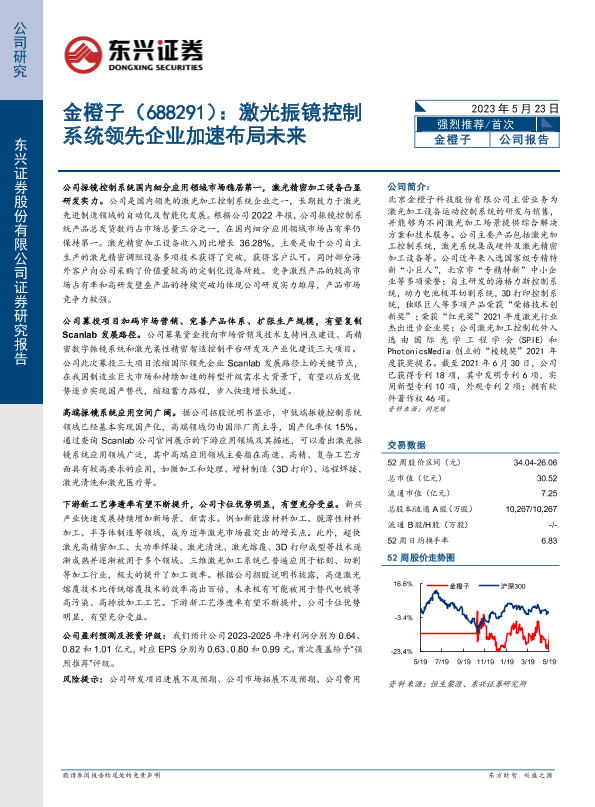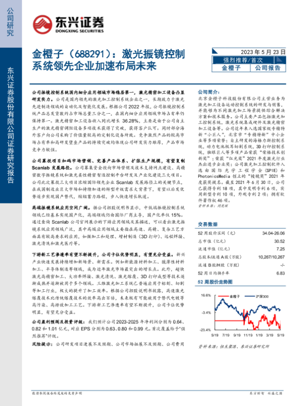 【东兴证券】【20230523】金橙子(688291):激光振镜控制系统领先企业加速布局未来-21页