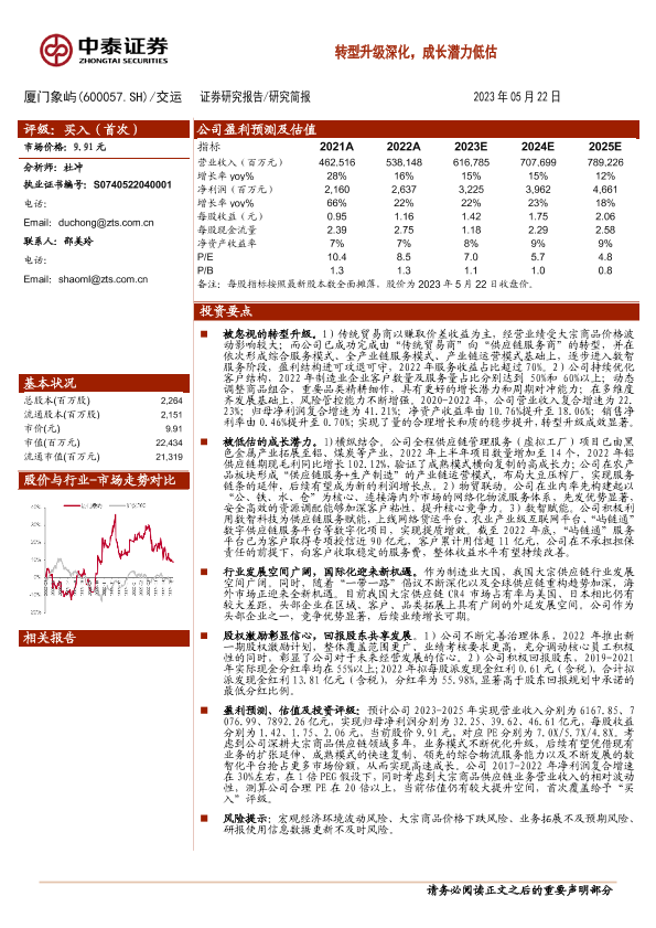【中泰证券】【20230522】20230522-中泰证券-厦门象屿-600057.SH-转型升级深化,成长潜力低估-27页