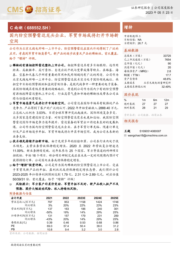 【海通证券】【20230523】国内防空预警雷达龙头企业,军贸市场或将打开市场新空间-29页