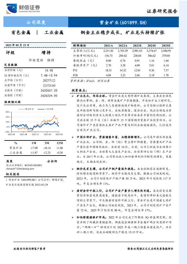 【财信证券】【20230523】20230523-财信证券-紫金矿业-601899.SH-铜金主业稳步成长,矿业龙头持续扩张-30页