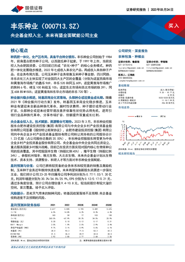 丰乐种业 农化业务 央企基金 种业振兴 转基因商业化