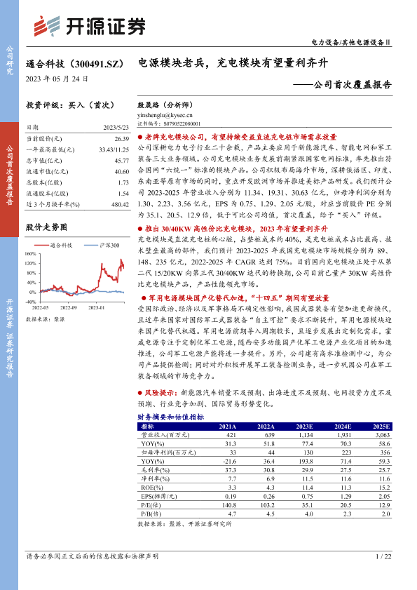 【开源证券】【20230524】通合科技-300491.SZ-公司首次覆盖报告:电源模块老兵,充电模块有望量利齐升-22页