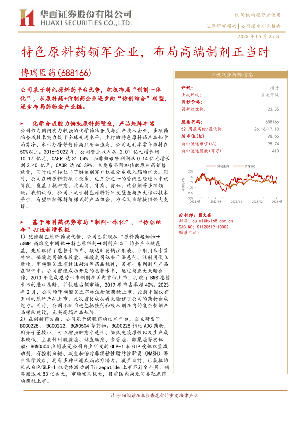 【华西证券】【20230525】特色原料药领军企业,布局高端制剂正当时-33页