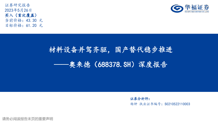 【华福证券】【20230526】20230526-华福证券-奥来德-688378.SH-深度报告:材料设备并驾齐驱,国产替代稳步推进-37页