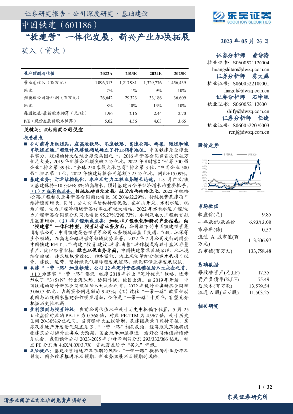 【东吴证券】【20230526】中国铁建-601186.SH-“投建营”一体化发展,新兴产业加快拓展-32页