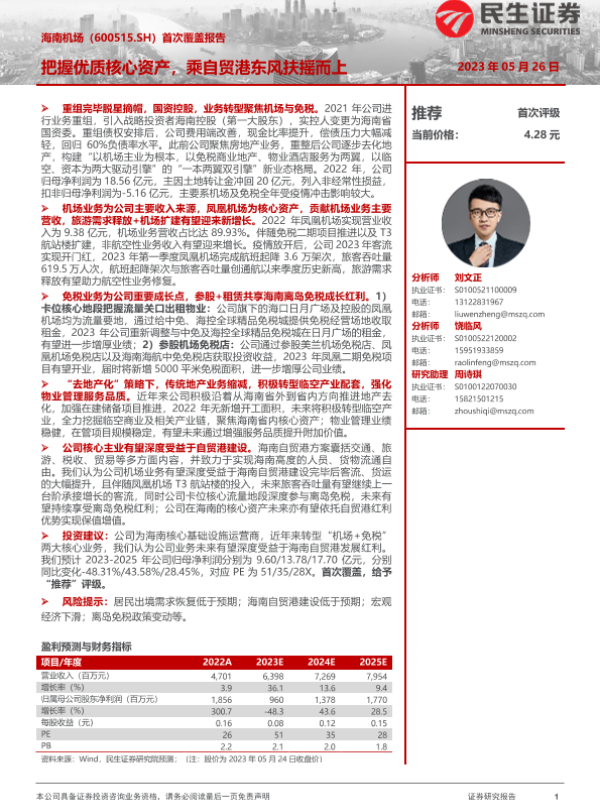 【民生证券】【20230526】海南机场-600515.SH-首次覆盖报告:把握优质核心资产,乘自贸港东风扶摇而上-41页