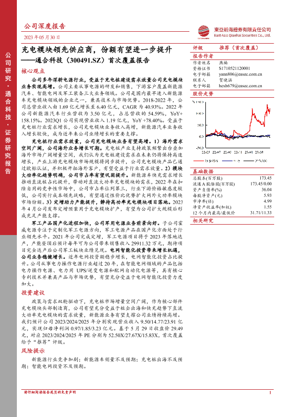 【东亚前海证券】【20230530】通合科技(300491.SZ)首次覆盖报告:充电模块领先供应商,份额有望进一步提升-28页