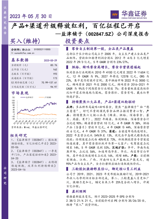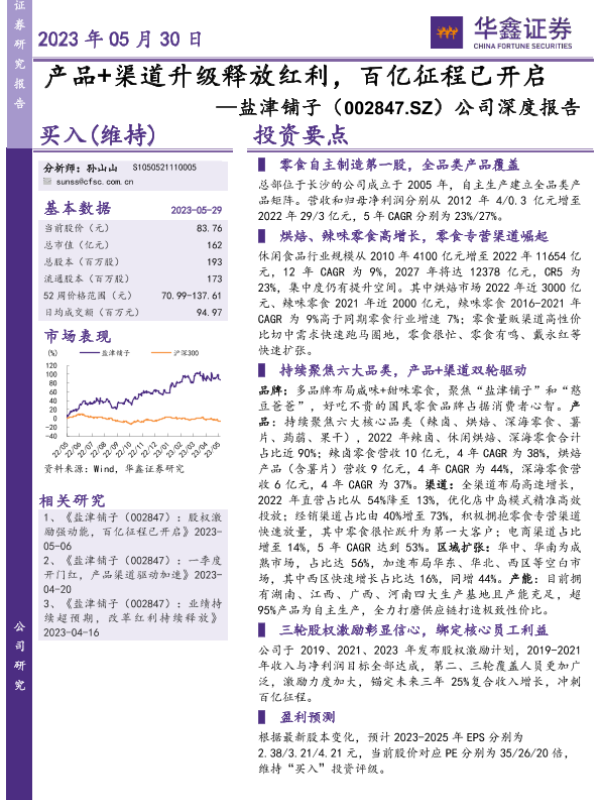【华鑫证券】【20230530】产品+渠道升级释放红利,百亿征程已开启——盐津铺子(002847.SZ)公司深度报告-37页