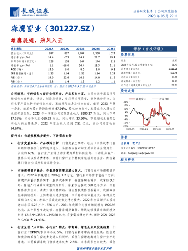 【长城证券】【20230529】森鹰窗业-301227.SZ-雄鹰展翅,乘风入云-40页