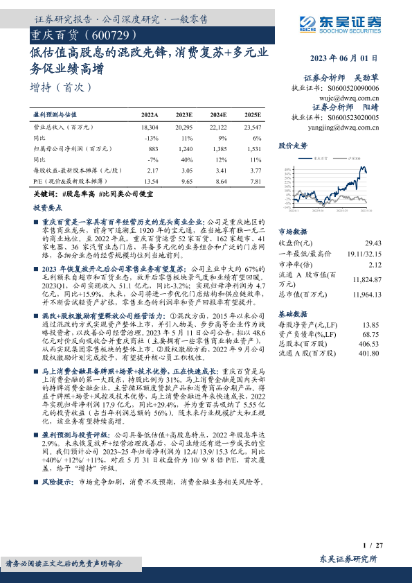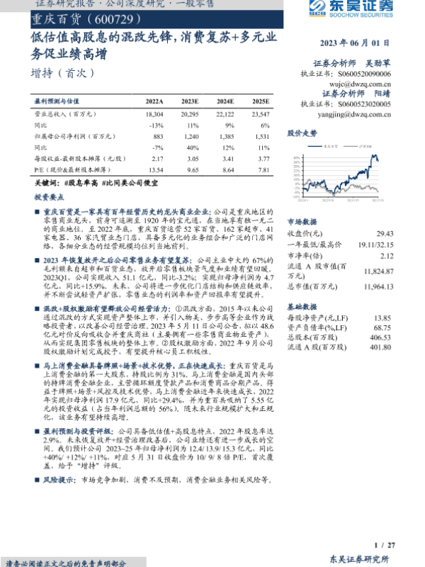 【东吴证券】【20230601】低估值高股息的混改先锋,消费复苏+多元业务促业绩高增-27页