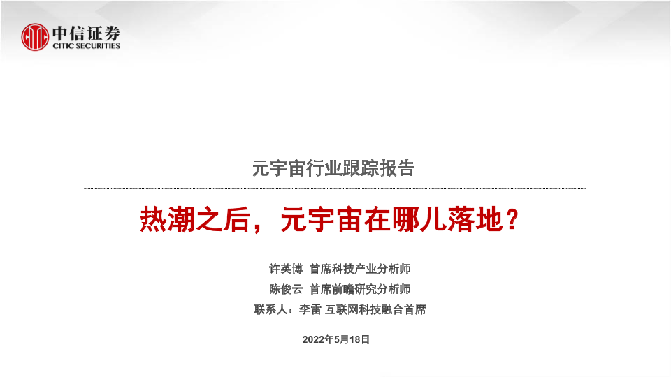 【中信证券】【20220518】元宇宙行业跟踪报告:热潮之后,元宇宙在哪儿落地?-21页