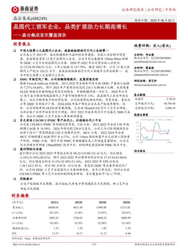 【浙商证券】【20230602】晶合集成首次覆盖报告:晶圆代工领军企业,品类扩展助力长期高增长-25页