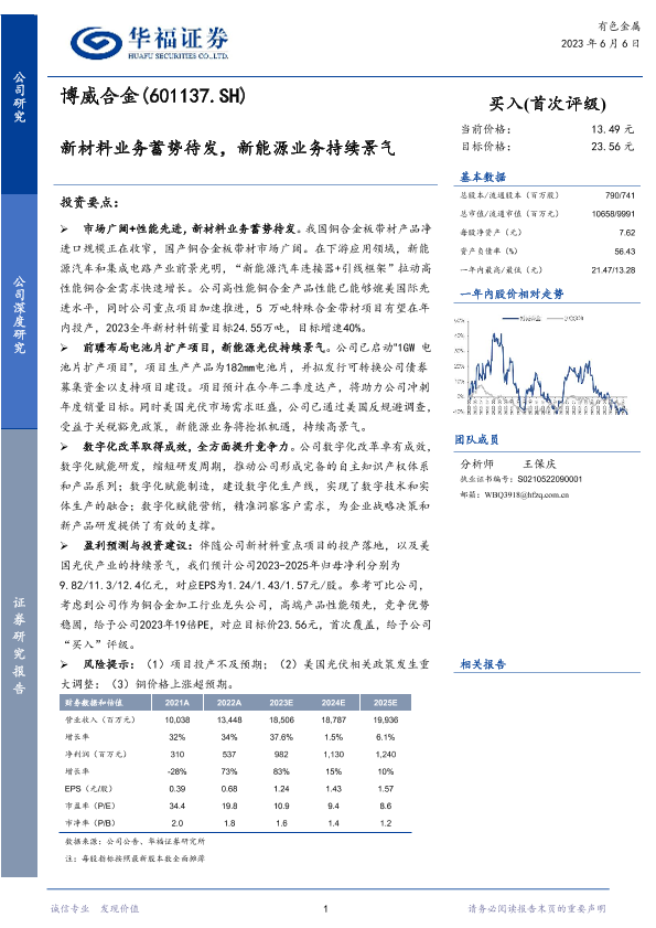 【华福证券】【20230606】博威合金(601137.SH)-新材料业务蓄势待发,新能源业务持续景气-30页