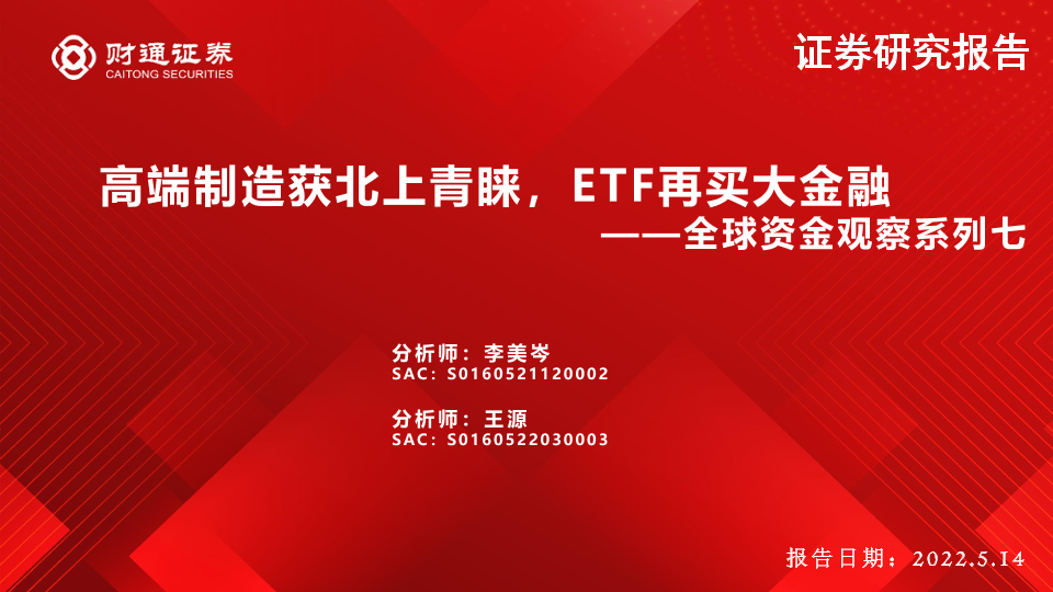【财通证券】【20220514】全球资金观察系列七:高端制造获北上青睐,ETF再买大金融-30页
