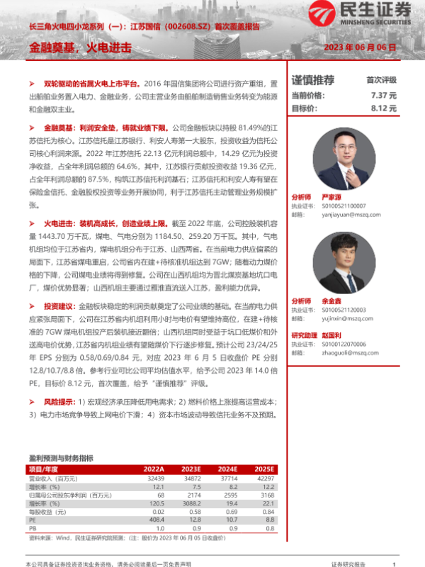 【民生证券】【20230606】长三角火电四小龙系列(一):江苏国信(002608.SZ)首次覆盖报告:金融奠基,火电进击-23页