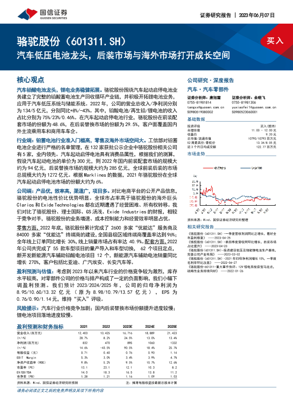 【国信证券】【20230607】骆驼股份(601311.SH)-汽车低压电池龙头,后装市场与海外市场打开成长空间-45页