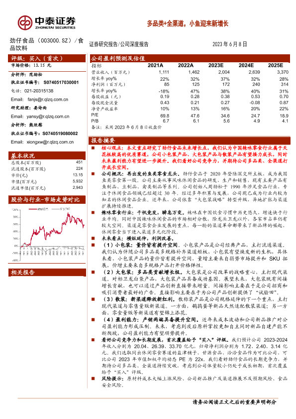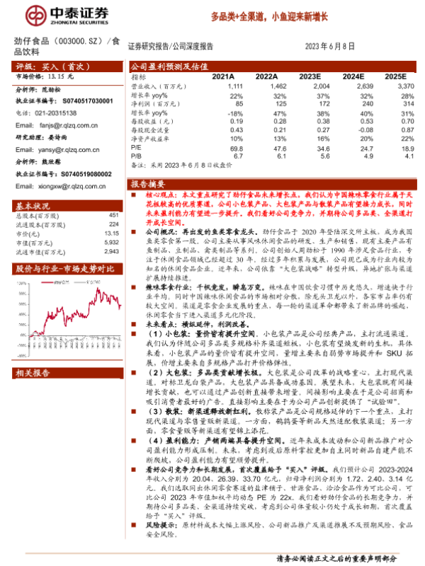 【中泰证券】【20230608】20230608-中泰证券-劲仔食品-003000.SZ-多品类+全渠道,小鱼迎来新增长-23页