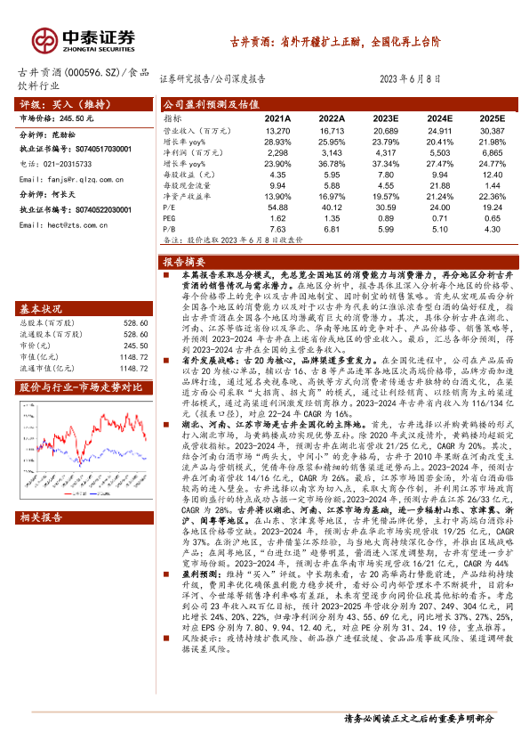 【中泰证券】【20230608】古井贡酒:省外开疆扩土正酣,全国化再上台阶-26页