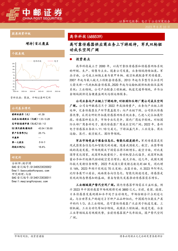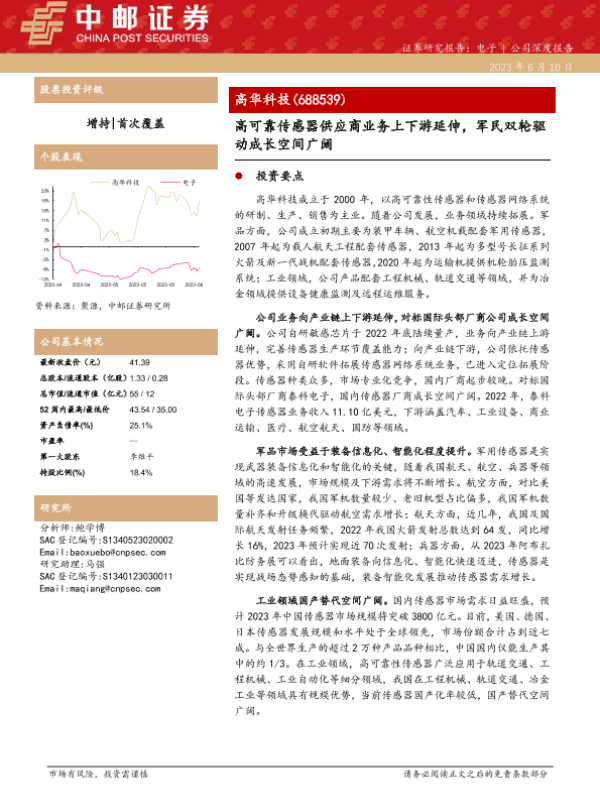 【中邮证券】【20230610】高华科技-688539.SH-高可靠传感器供应商业务上下游延伸,军民双轮驱动成长空间广阔-27页