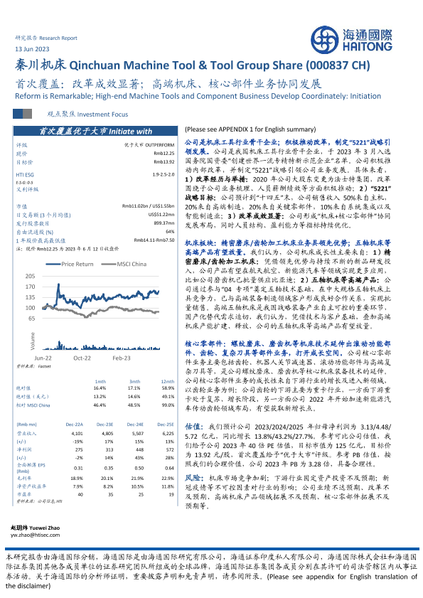 【海通国际】【20230613】首次覆盖:改革成效显著;高端机床、核心部件业务协同发展-51页