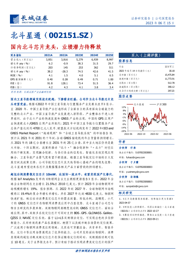【长城证券】【20230615】国内北斗芯片龙头,业绩潜力待释放-35页