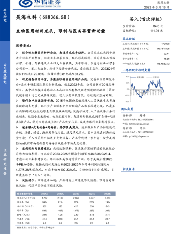 【华福证券】【20230616】生物医用材料龙头,眼科与医美再蓄新动能-23页