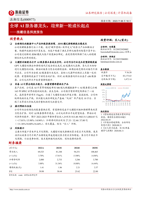 【浙商证券】【20230618】20230618-浙商证券-浪潮信息-000977.SZ-浪潮信息深度报告:全球AI服务器龙头,迎来新一轮成长起点-19页