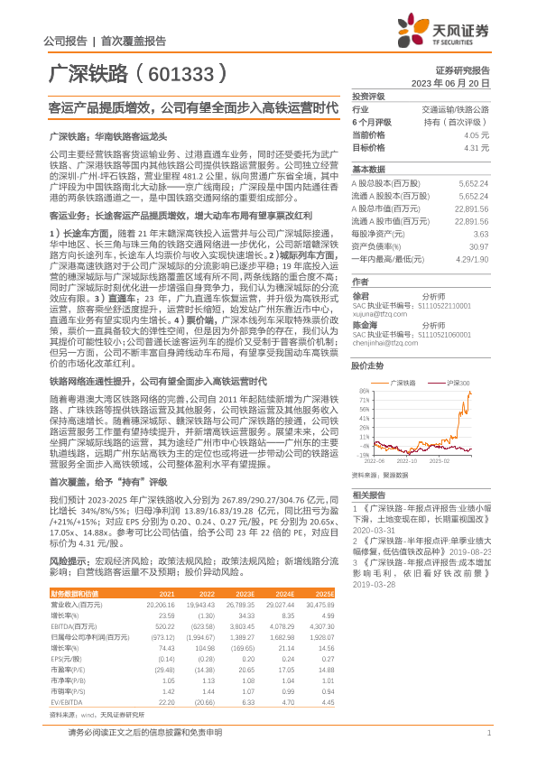 【天风证券】【20230620】客运产品提质增效,公司有望全面步入高铁运营时代-23页