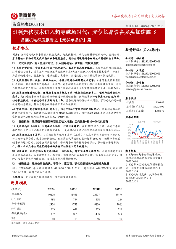 【浙商证券】【20230623】晶盛机电深度报告之【光伏单晶炉】篇:引领光伏技术进入超导磁场时代;光伏长晶设备龙头加速腾飞-17页