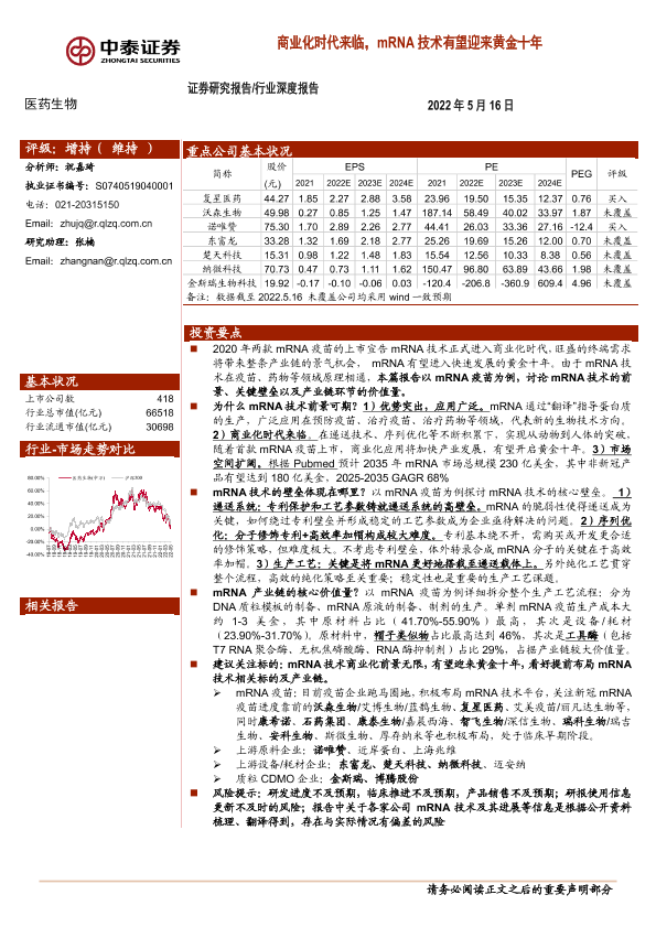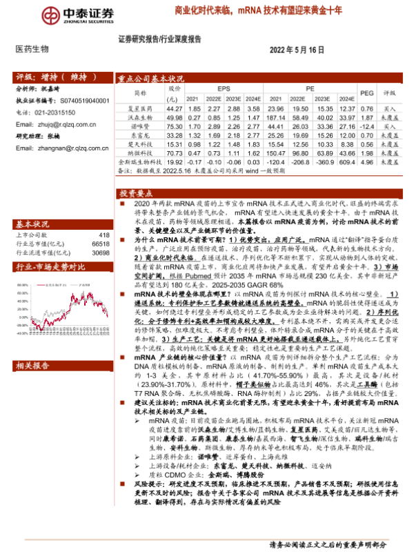 【中泰证券】【20220516】医药生物行业深度报告:商业化时代来临,mRNA技术有望迎来黄金十年-23页
