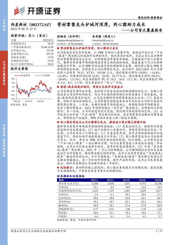 【开源证券】【20230625】20230625-开源证券-伟星新材-002372.SZ-公司首次覆盖报告:管材零售龙头护城河深厚,同心圆助力成长-37页