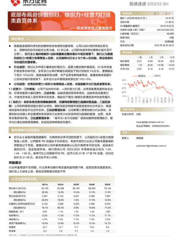 【东方证券】【20230628】圆通速递首次覆盖报告:底部布局迎价值回归,组织力+经营力打造类直营体系-39页