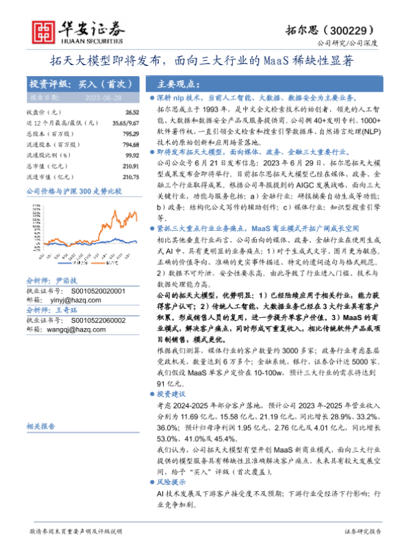 【华安证券】【20230628】拓天大模型即将发布,面向三大行业的MaaS稀缺性显著-19页