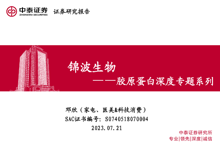 【中泰证券】【20230721】锦波生物——胶原蛋白深度专题系列-33页