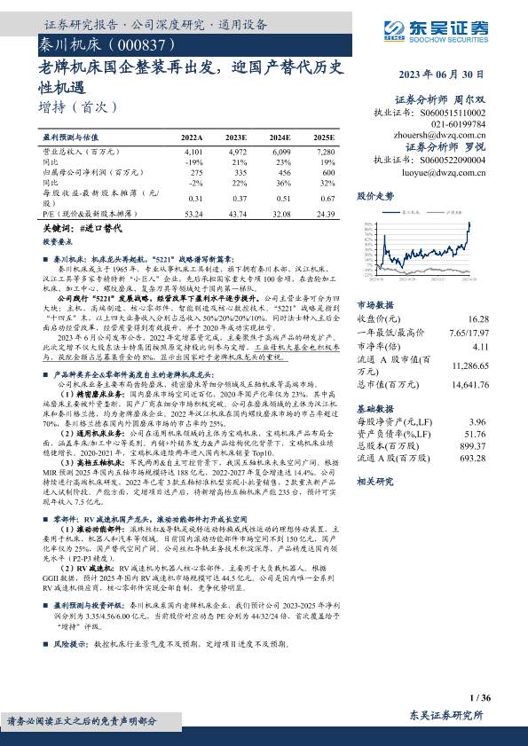 【东吴证券】【20230630】老牌机床国企整装再出发,迎国产替代历史性机遇-36页