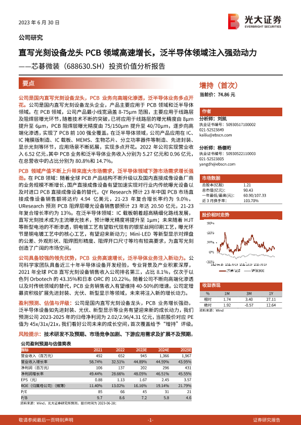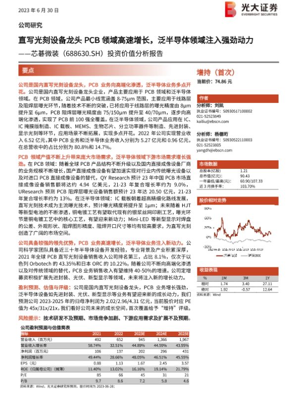 【光大证券】【20230630】芯碁微装(688630.SH)投资价值分析报告:直写光刻设备龙头PCB领域高速增长,泛半导体领域注入强劲动力-41页
