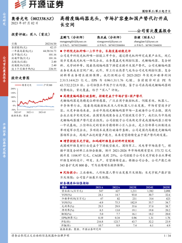【开源证券】【20230702】奥普光电-002338.SZ-公司首次覆盖报告:高精度编码器龙头,市场扩容叠加国产替代打开成长空间-34页