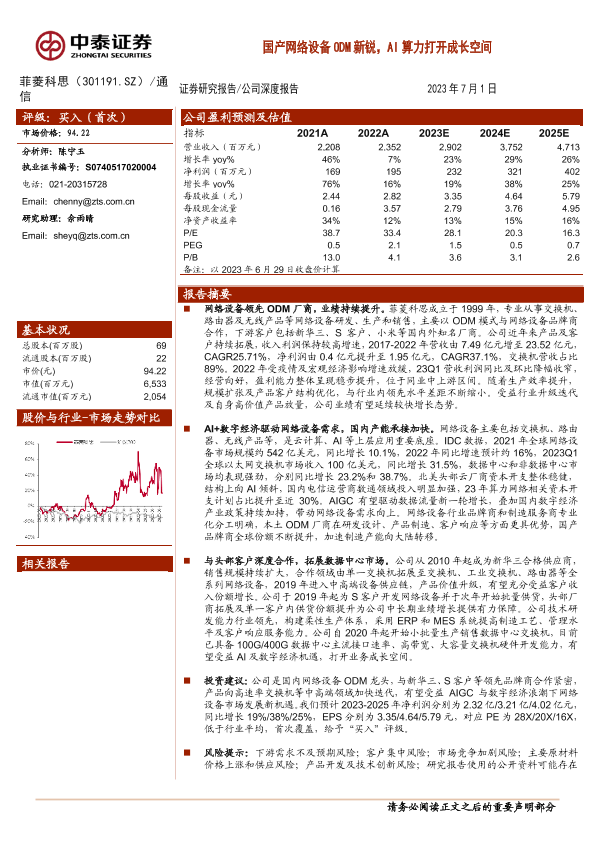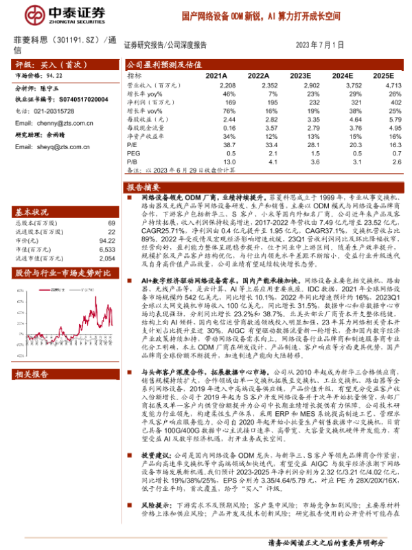 【中泰证券】【20230701】国产网络设备ODM新锐,AI算力打开成长空间-41页