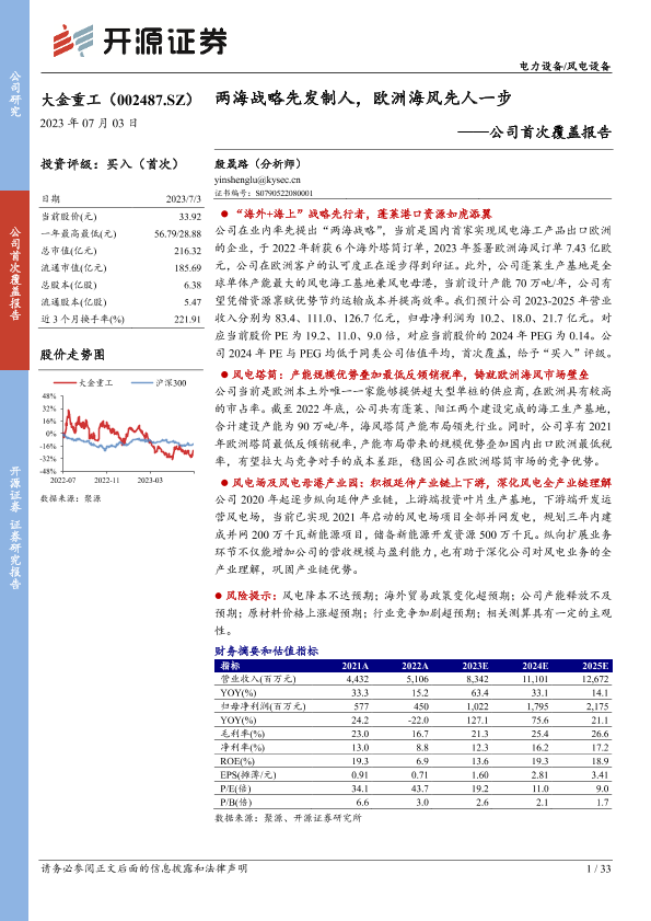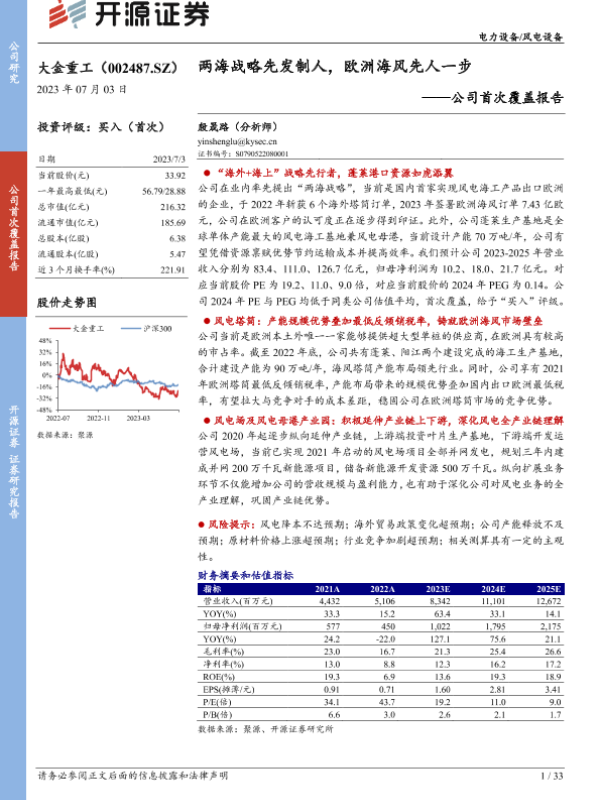 【开源证券】【20230703】大金重工-公司首次覆盖报告:两海战略先发制人,欧洲海风先人一步-33页