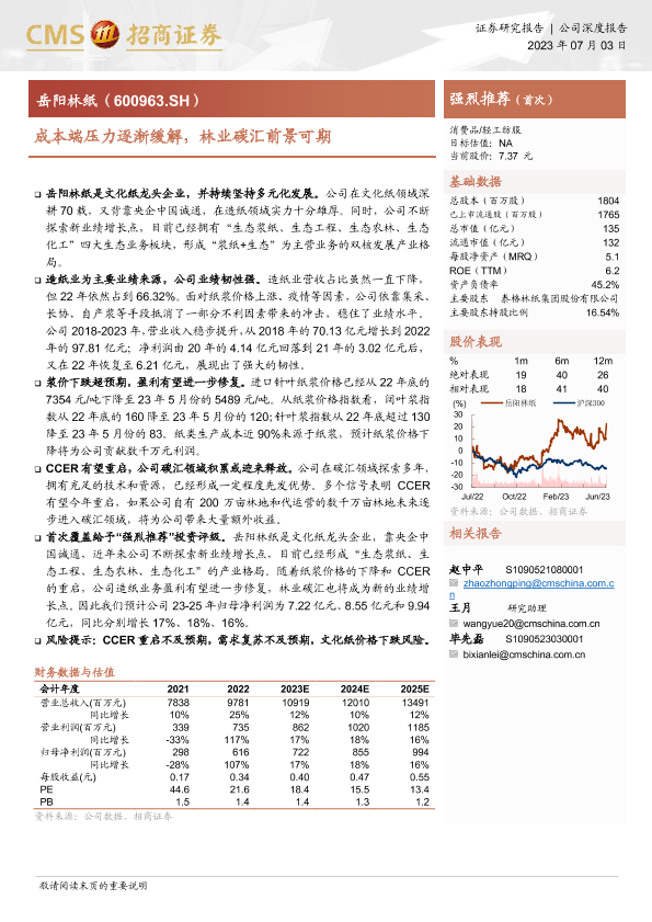 【海通证券】【20230703】成本端压力逐渐缓解,林业碳汇前景可期-17页