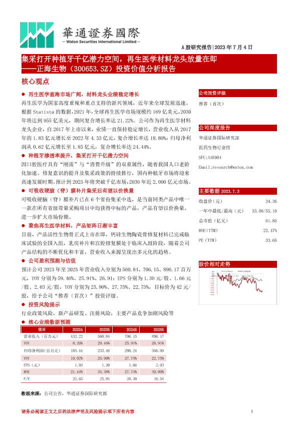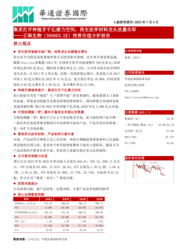 【华通证券国际】【20230704】集采打开种植牙千亿潜力空间,再生医学材料龙头放量在即——正海生物(300653.SZ)投资价值分析报告-31页