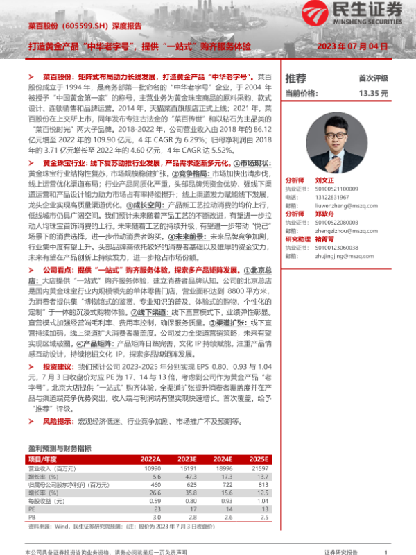 【民生证券】【20230704】20230704-民生证券-菜百股份-605599.SH-深度报告:打造黄金产品“中华老字号”,提供“一站式”购齐服务体验-33页